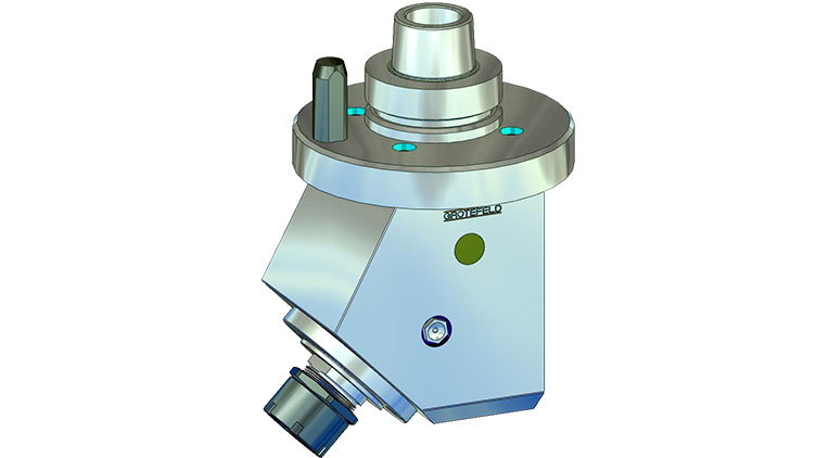 W17 系列角头配备加工主轴,可在 0°(水平)至最大 90°(垂直)范围内以固定角度可变布置。生成的固定角度以后无法更改。主轴的旋转方向与驱动器的旋转方向相反。驱动速度以 1:1 的比例传递到刀架。间歇运行时主轴最高转速可达 18,000 rpm。