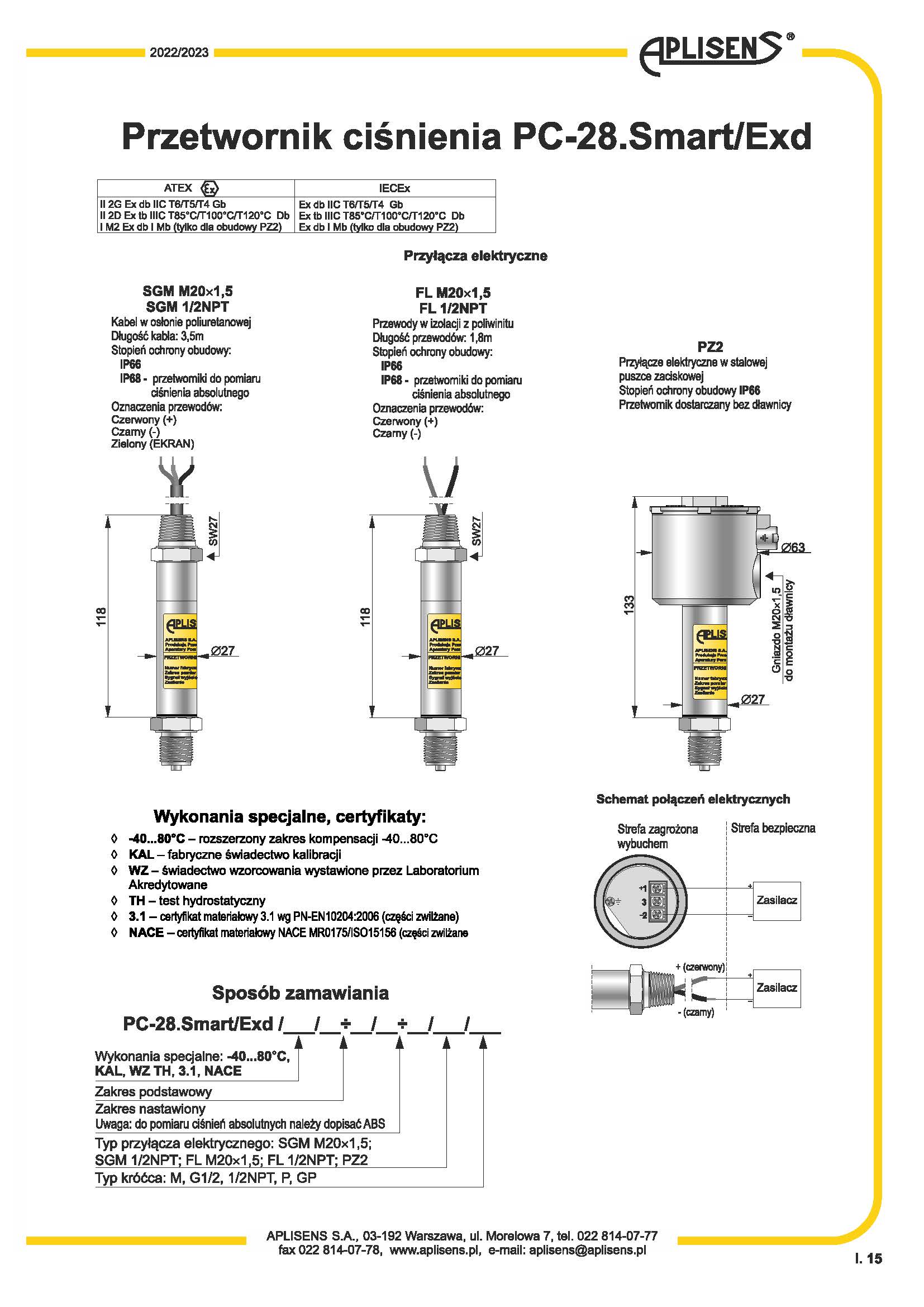 4 ÷ 20 mA输出信号+ Hart 协议。基本误差0.1%ATEX证书