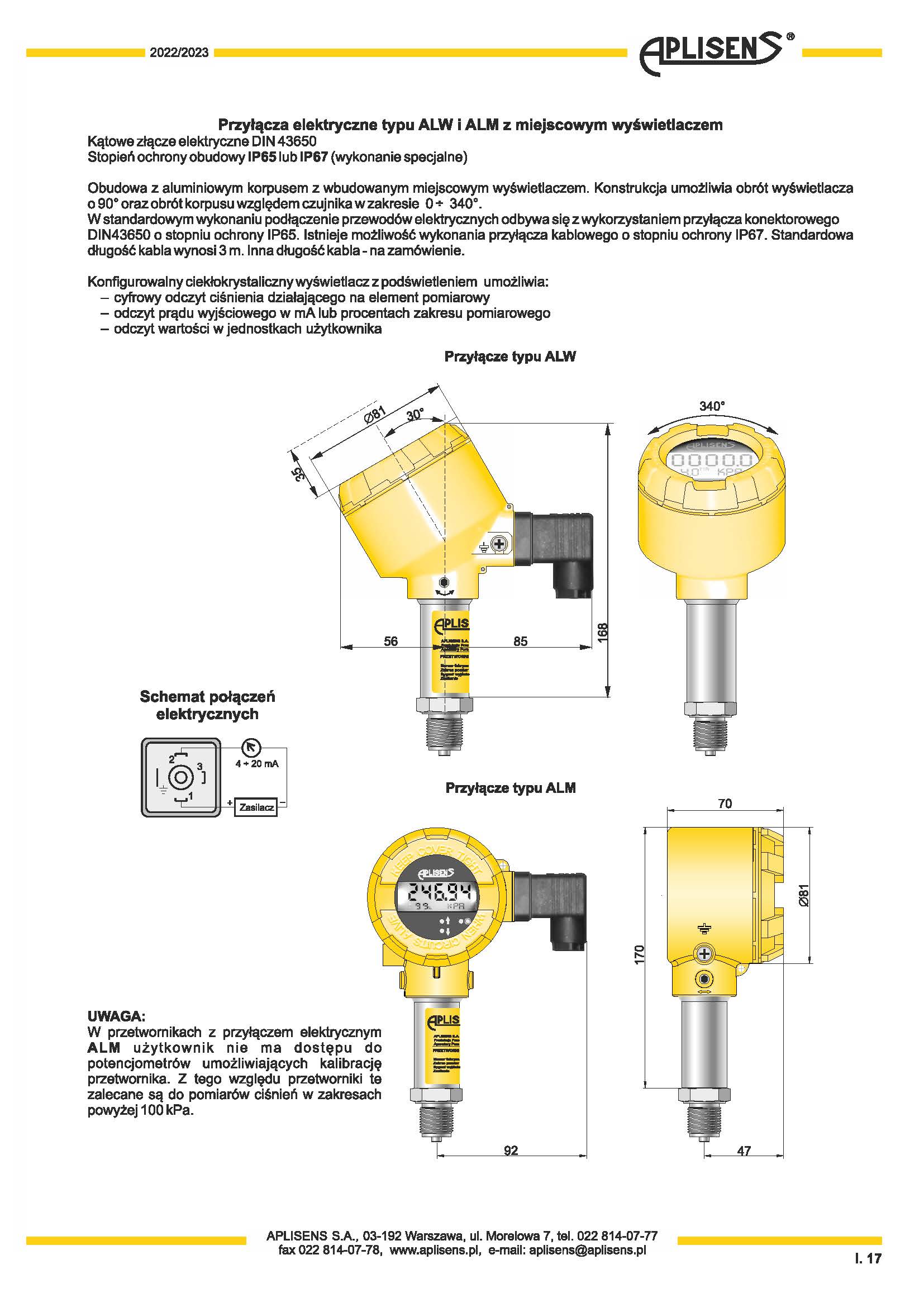 输出信号:4 ÷ 20mA , 0 ÷ 10V ,