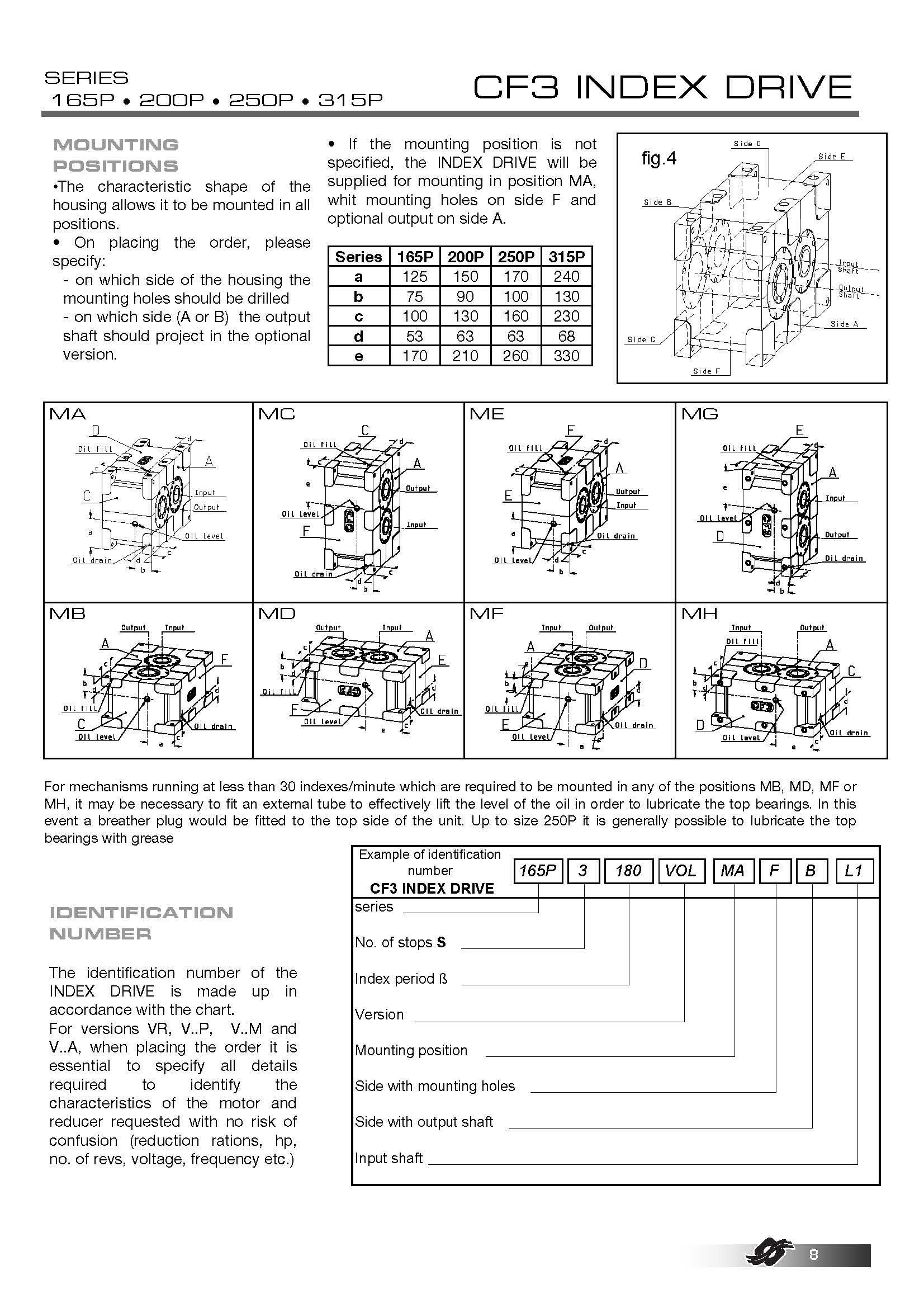 轴心距(mm):40 - 65 - 80 - 105 - 130 - 165 - 200 - 250 - 315