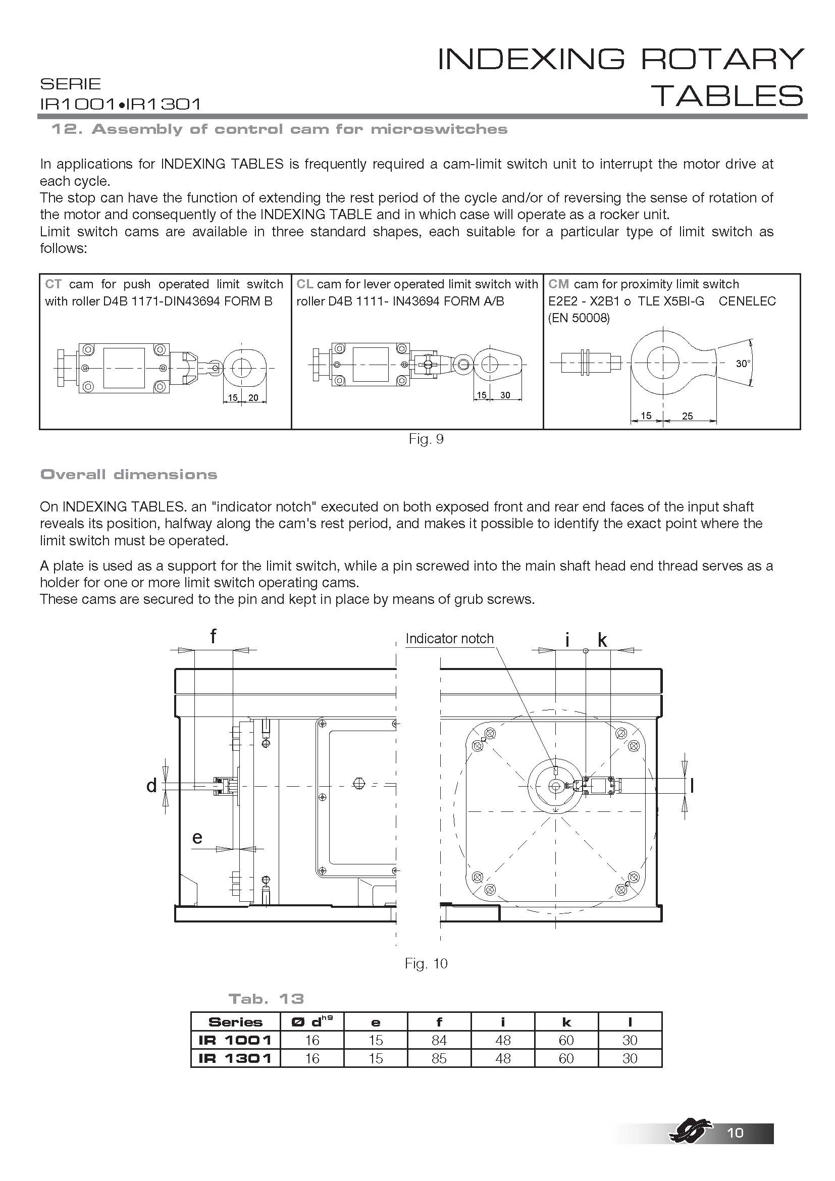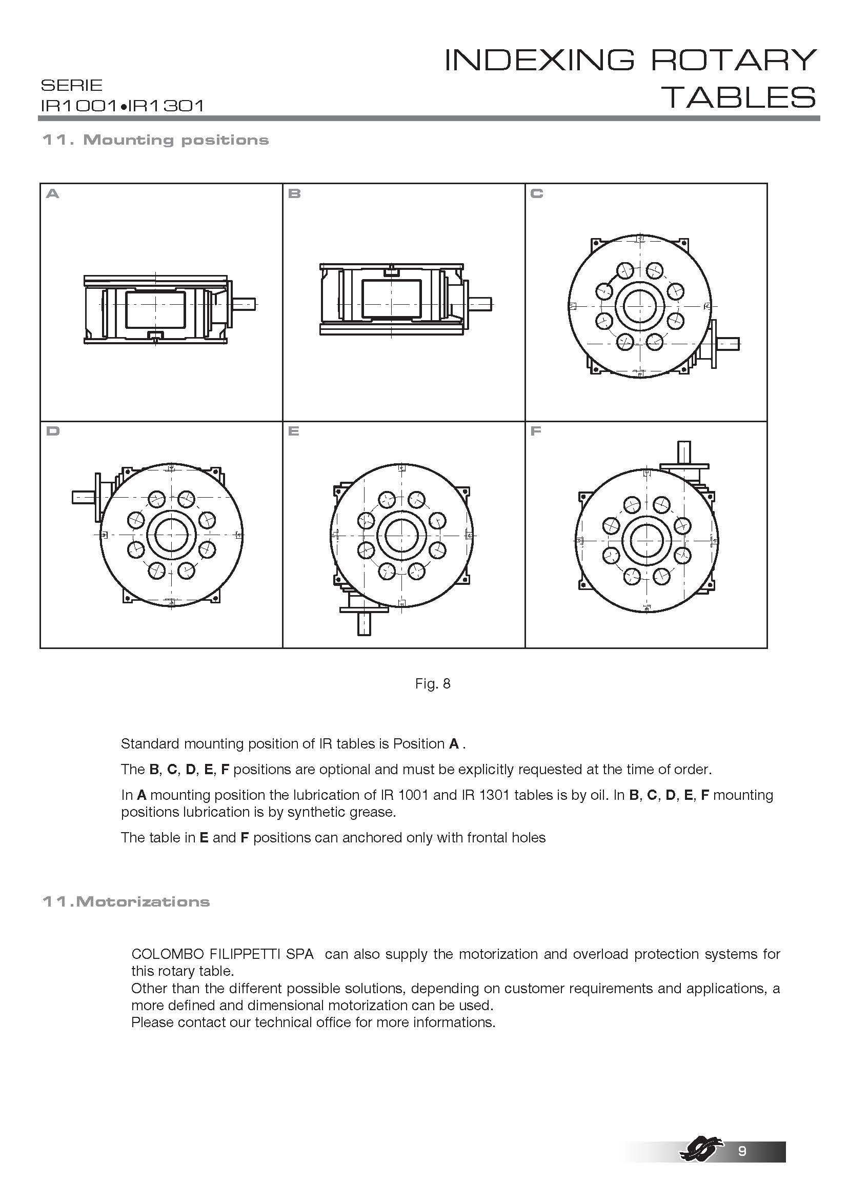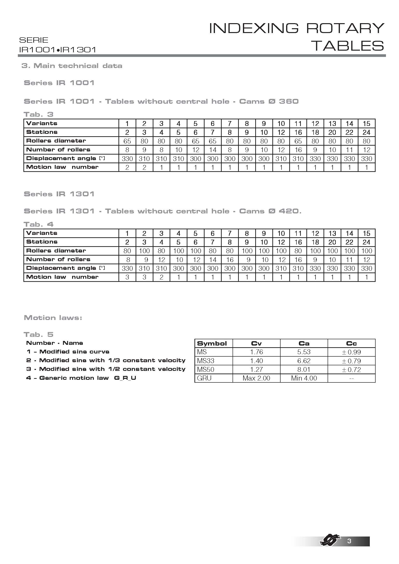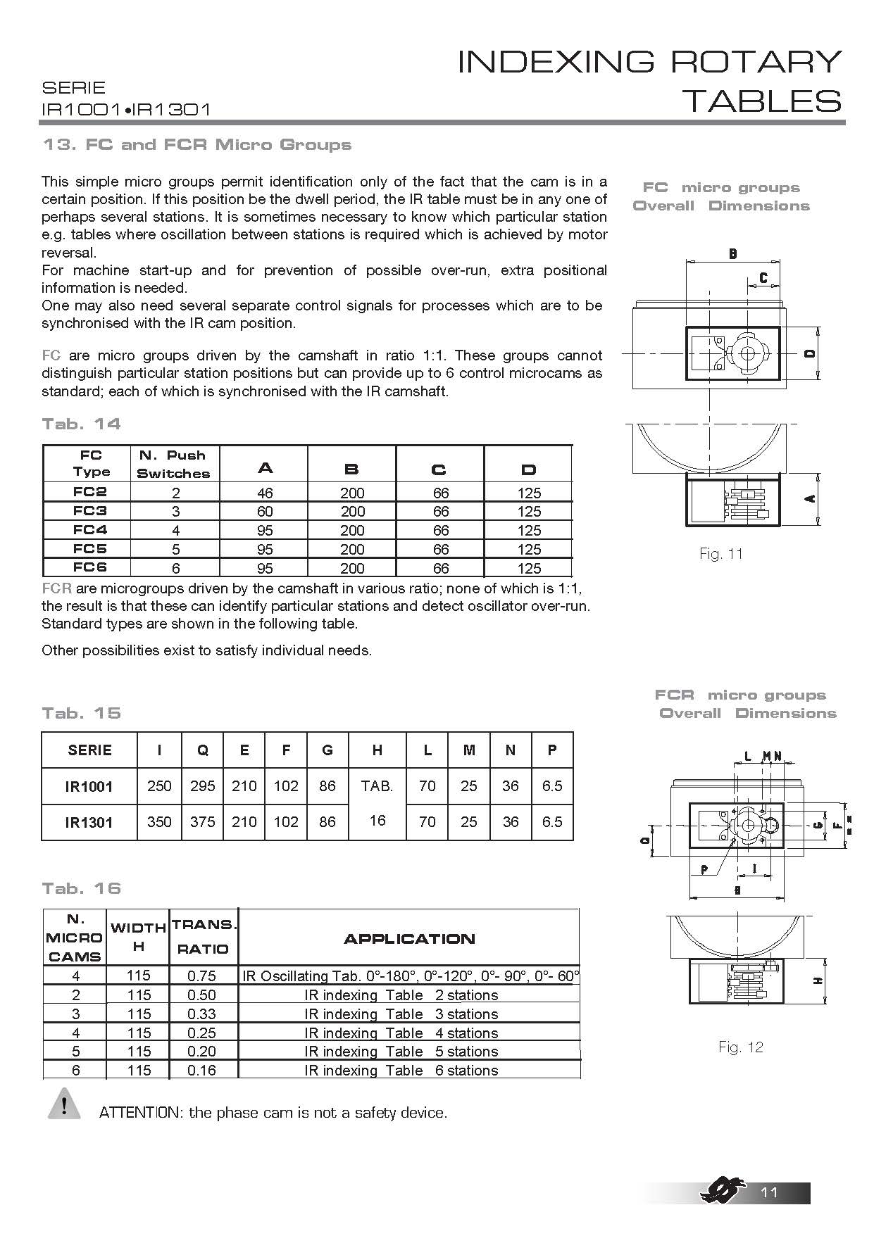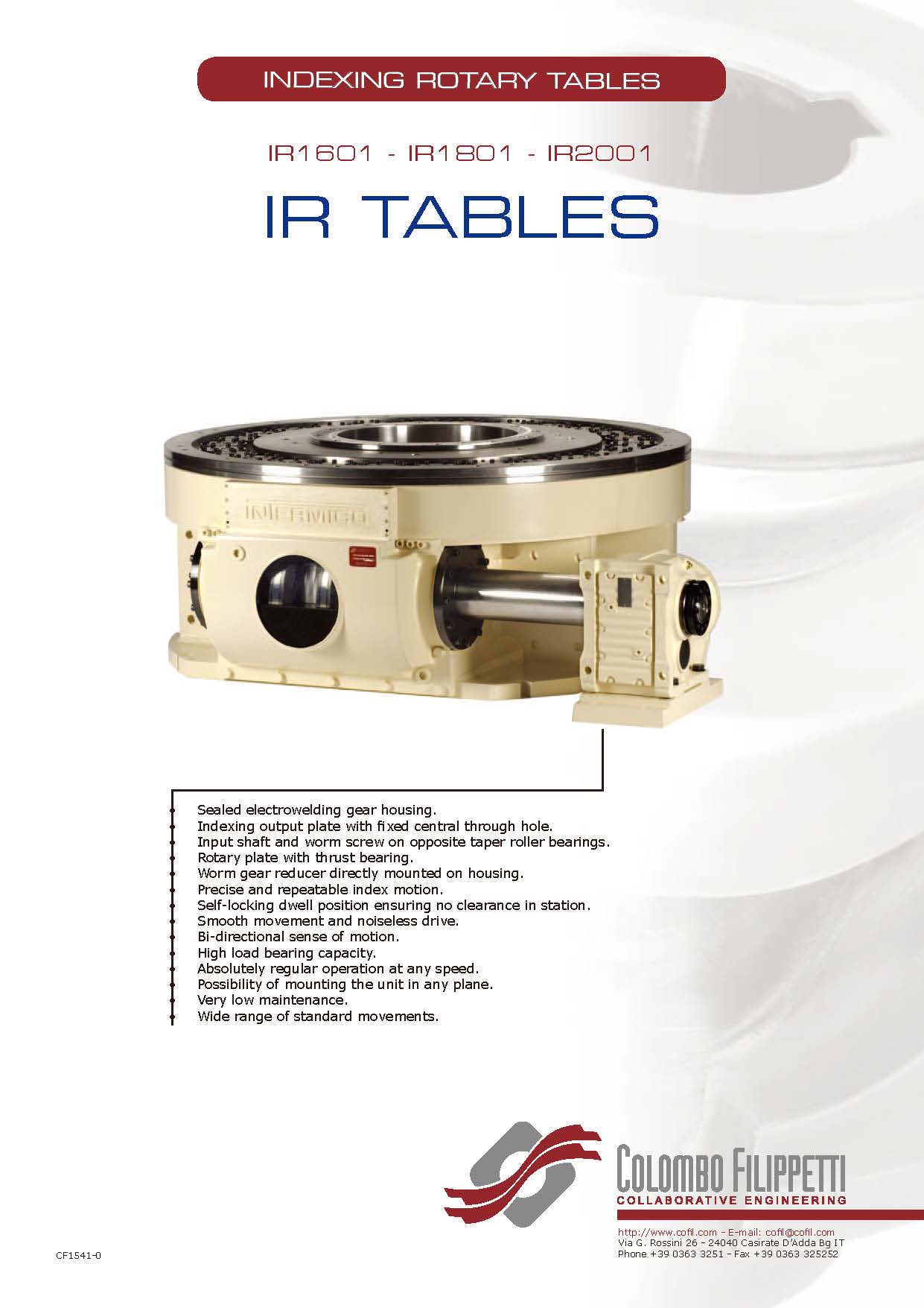 COLOMBO FILIPPETTI spa "IR" Minindex 系列的分度转台是圆柱形凸轮机械装置,可将输入轴的匀速旋转运动转换为输出表盘的分度旋转运动。