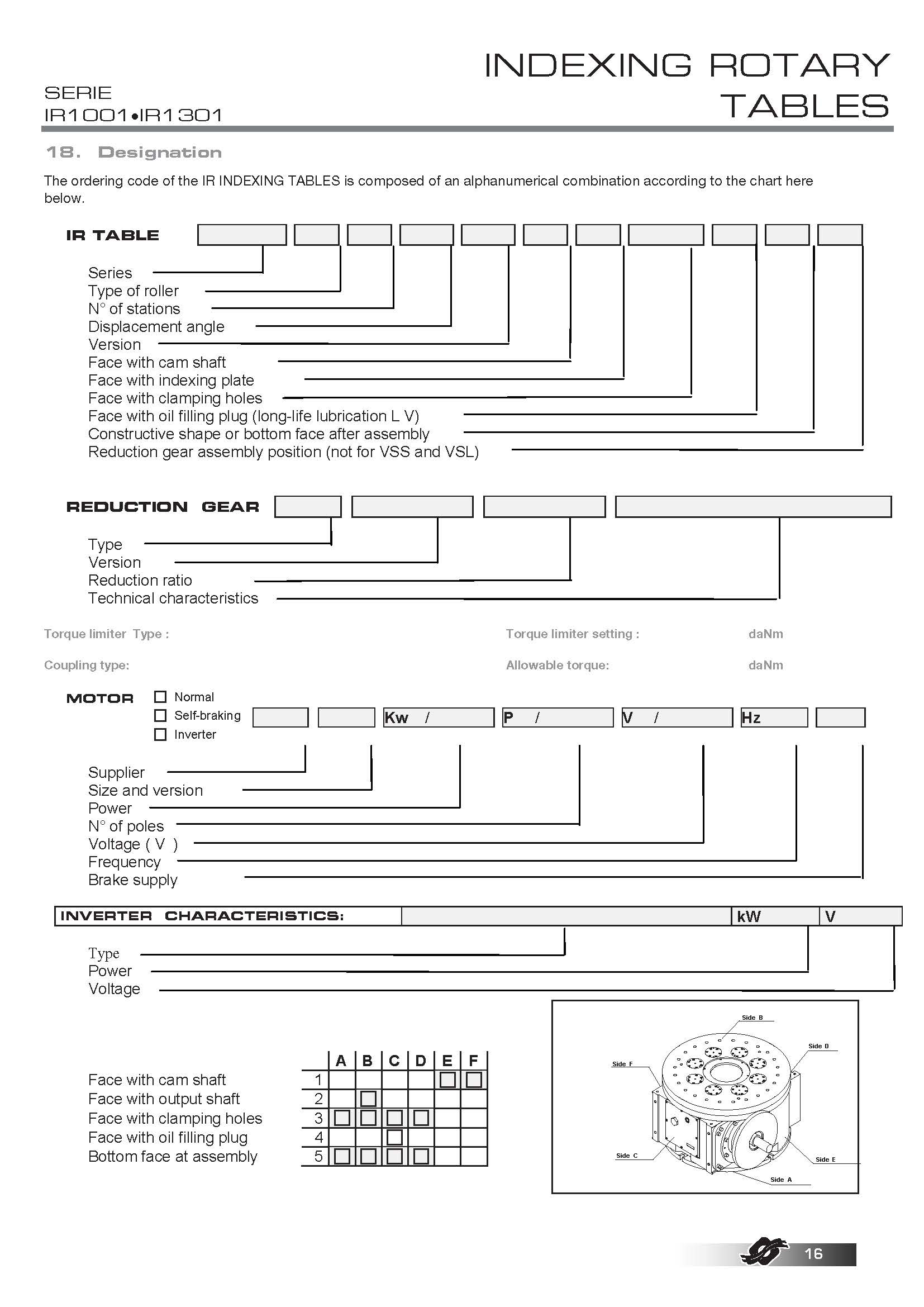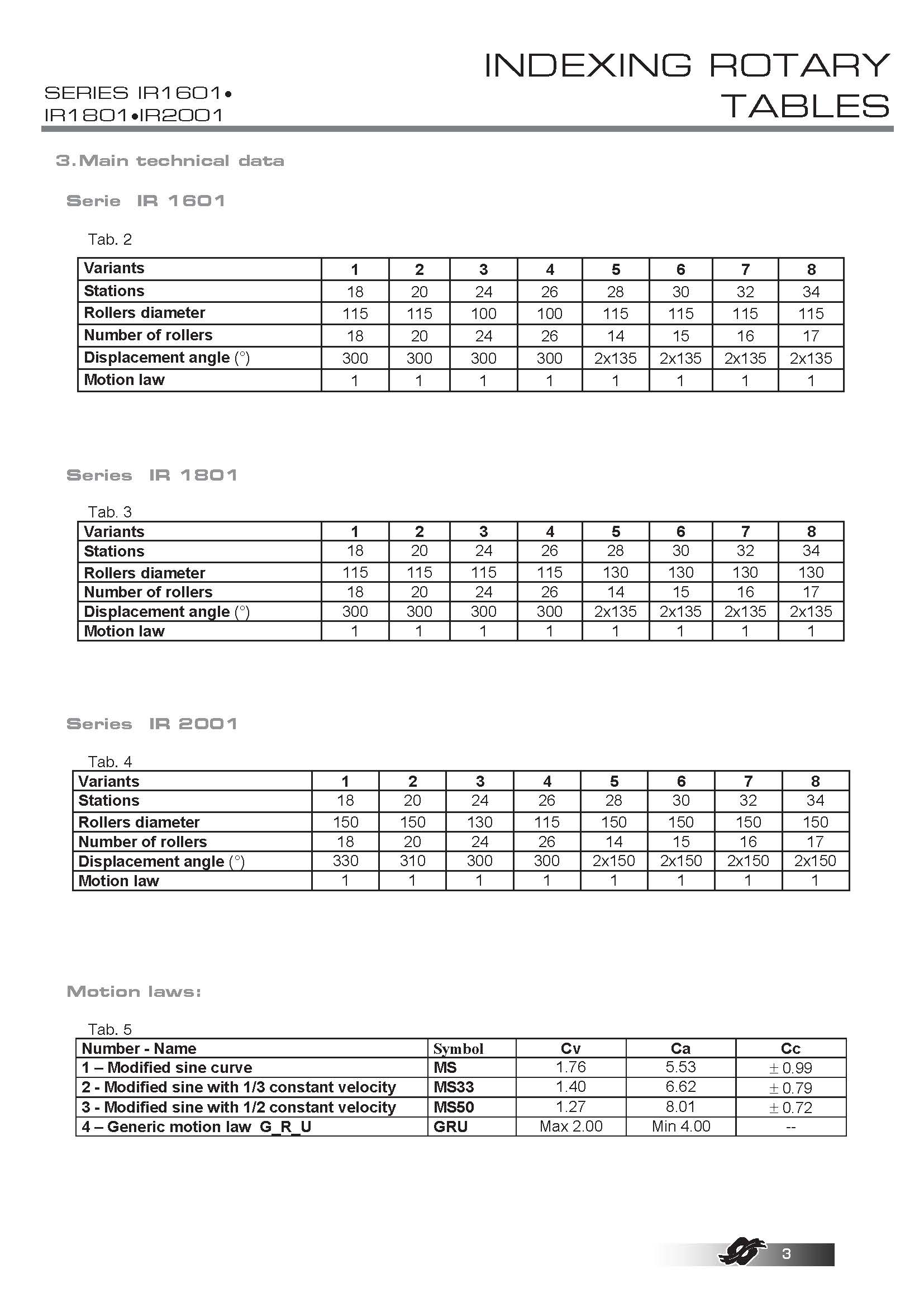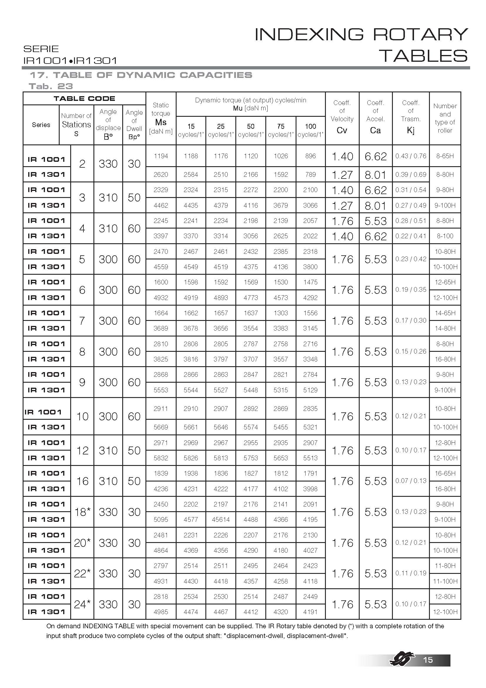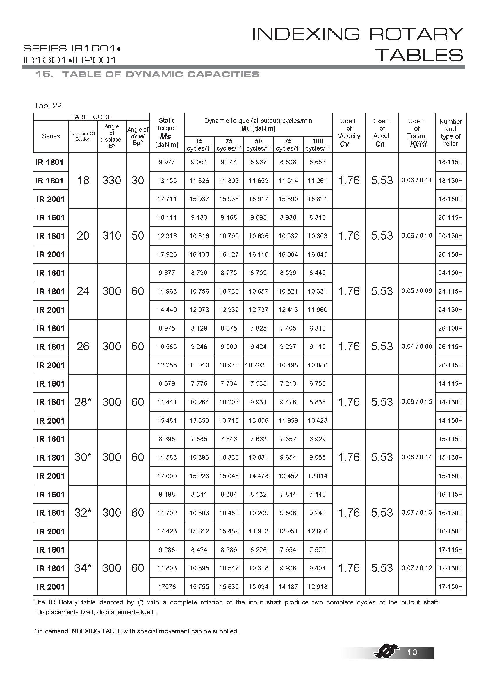 COLOMBO FILIPPETTI spa "IR" Minindex 系列的分度转台是圆柱形凸轮机械装置,可将输入轴的匀速旋转运动转换为输出表盘的分度旋转运动。