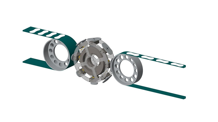 在球形凸轮中,与常用的圆柱凸轮不同,从动件和凸轮轮廓之间的接触面是恒定的,使用从动件的整个高度。在圆柱凸轮中,接触面的高度在旋转过程中会发生变化。为此,工程师必须增加圆柱凸轮的直径以获得更好的接触,但会降低机器的紧凑性和速度。