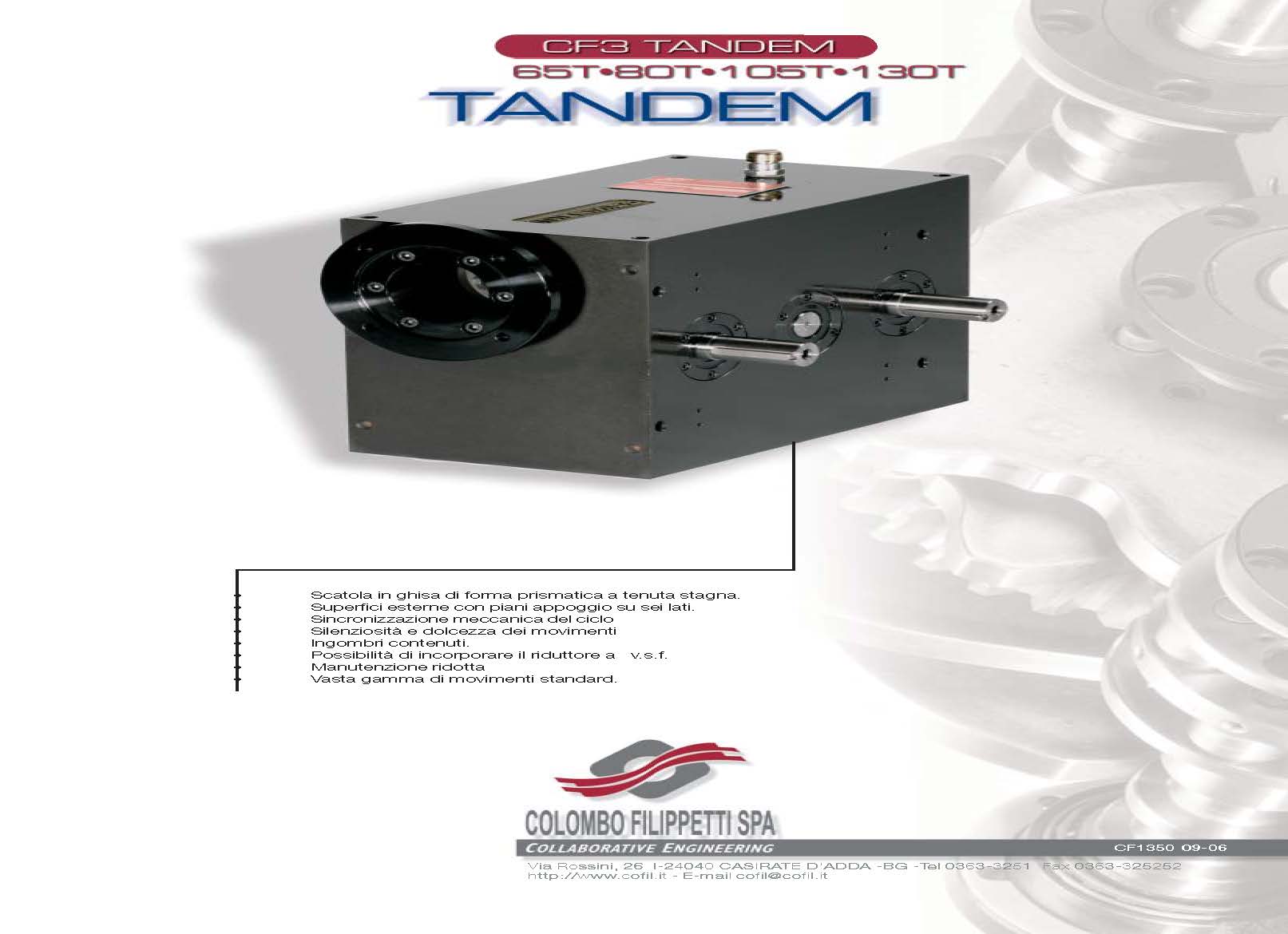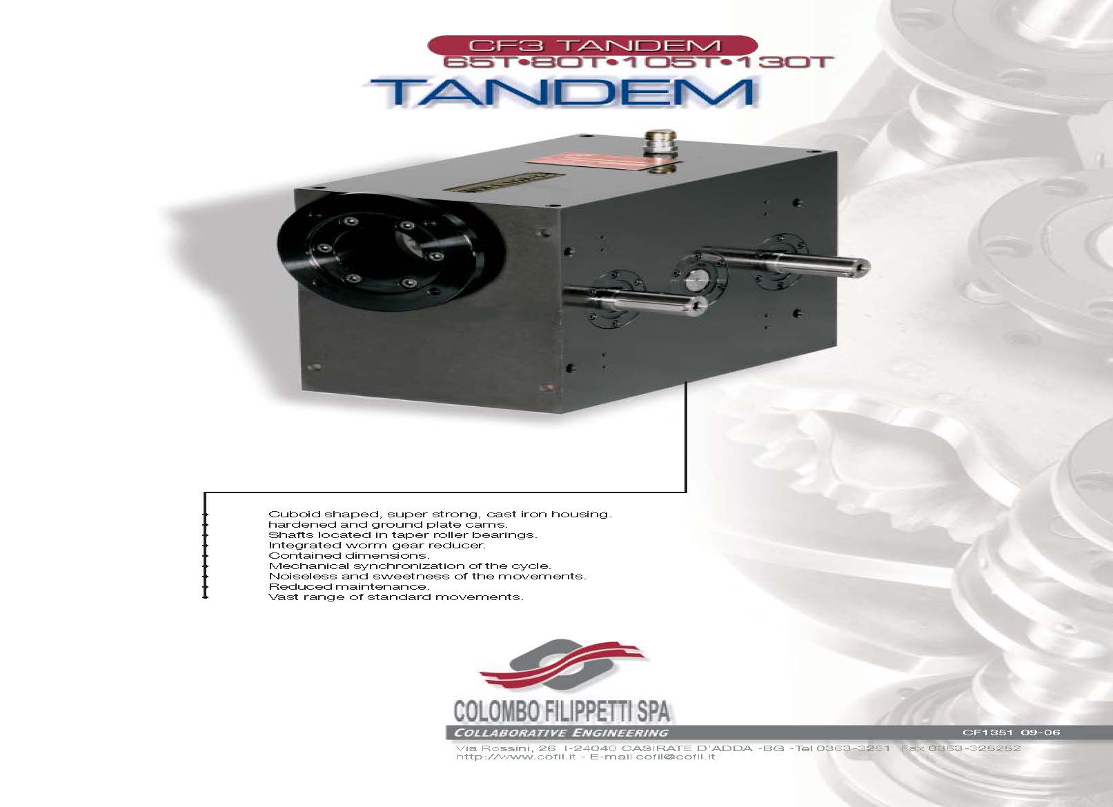 COLOMBO FILIPPETTI spa 的 TANDEM CF3 是一种机构,在一个盒子内结合了两组互补的轮廓凸轮和 CF3 系列的滚子从动件。
