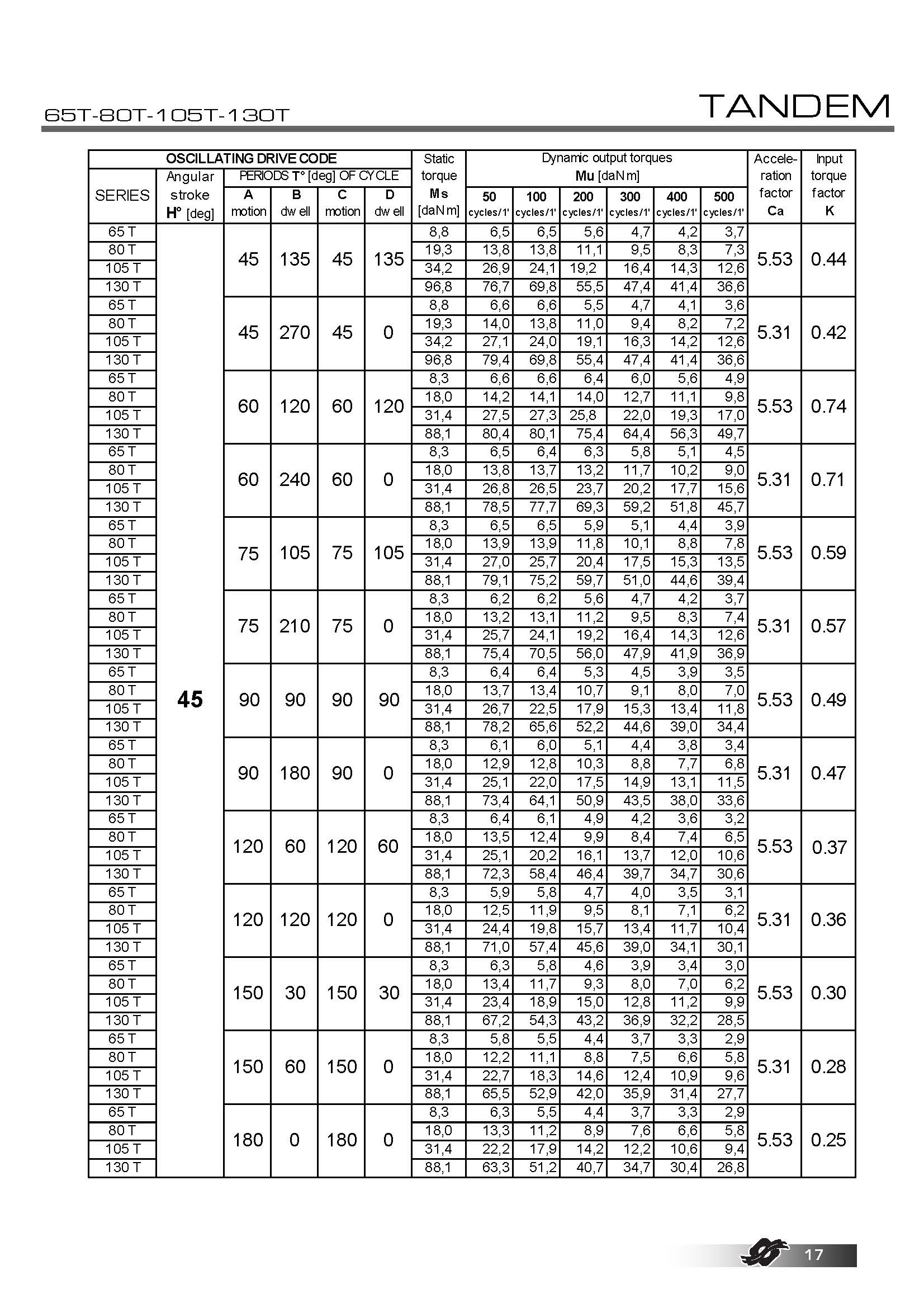 标准角行程:15° - 20° - 30° - 45°