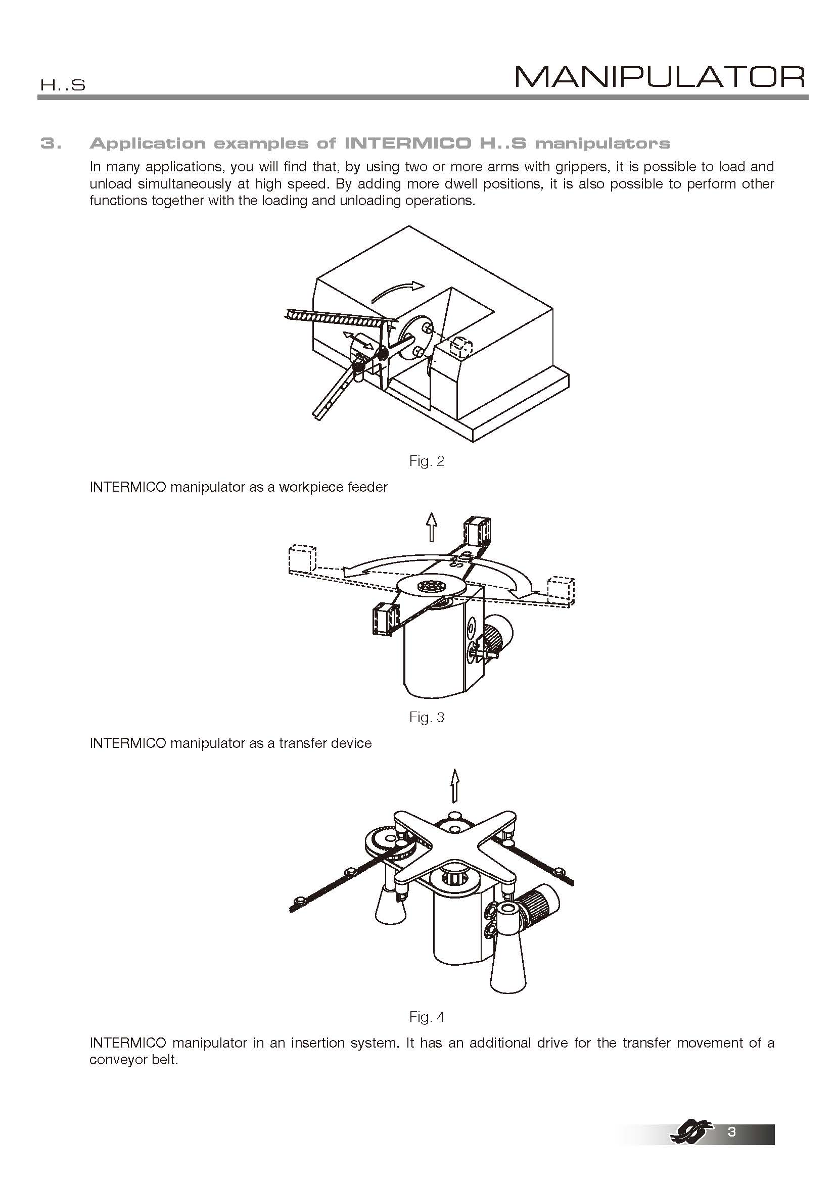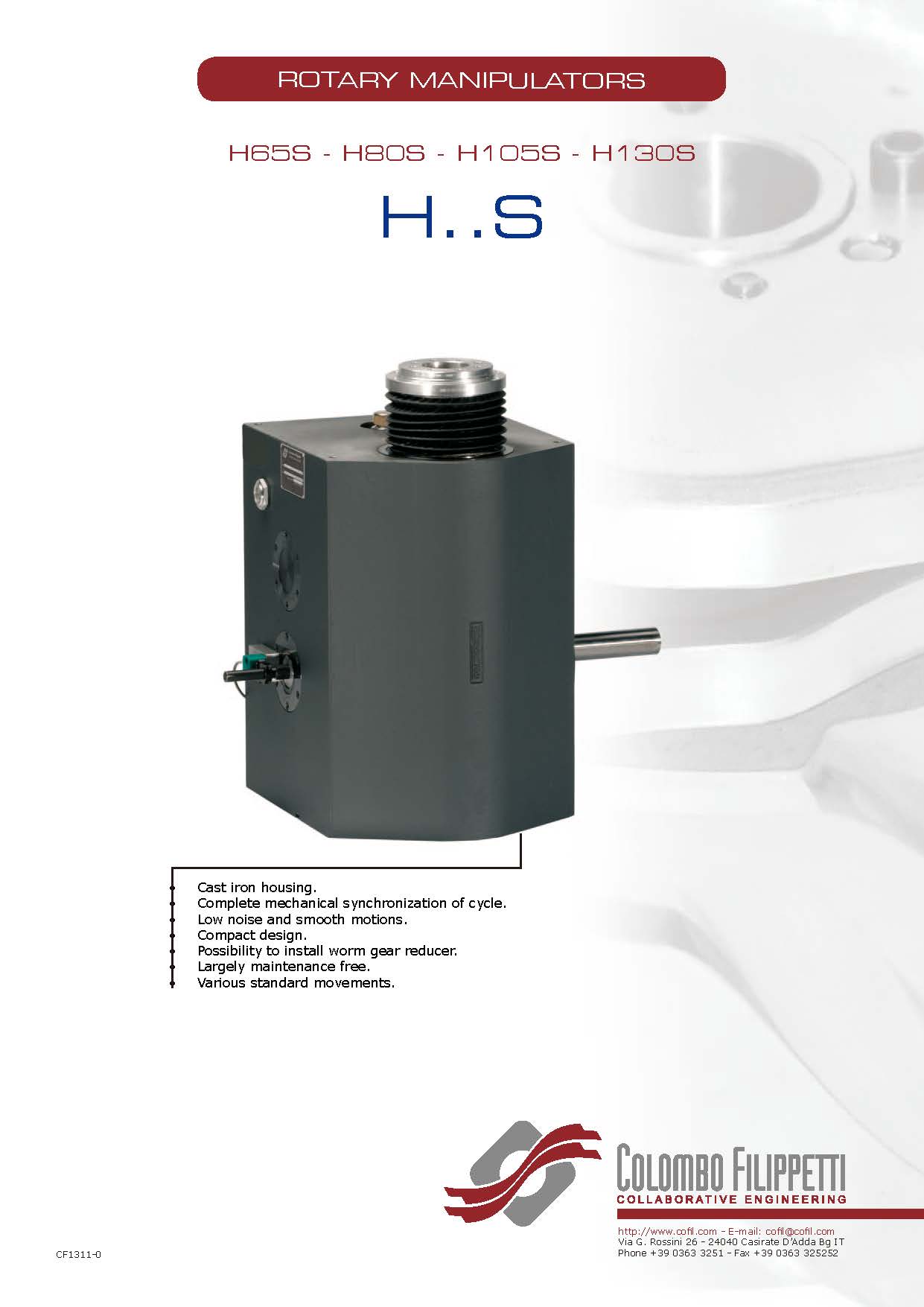 COLOMBO FILIPPETTI spa的H..S系列旋转机械手是共轭双凸轮机构,将输入的匀速旋转运动转换为旋转取放的典型运动,即旋转间歇运动和线性交替运动。