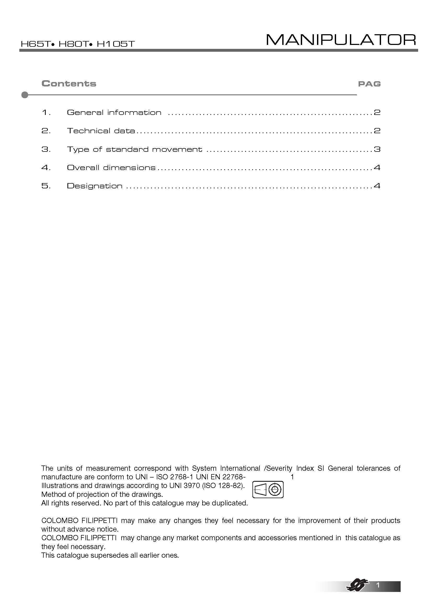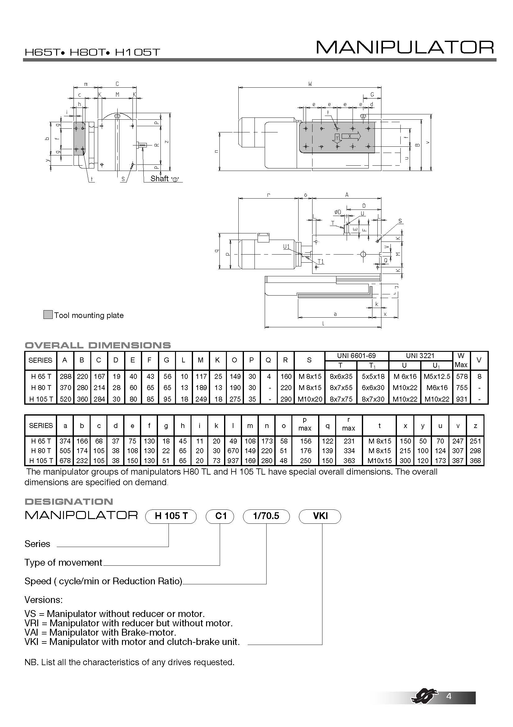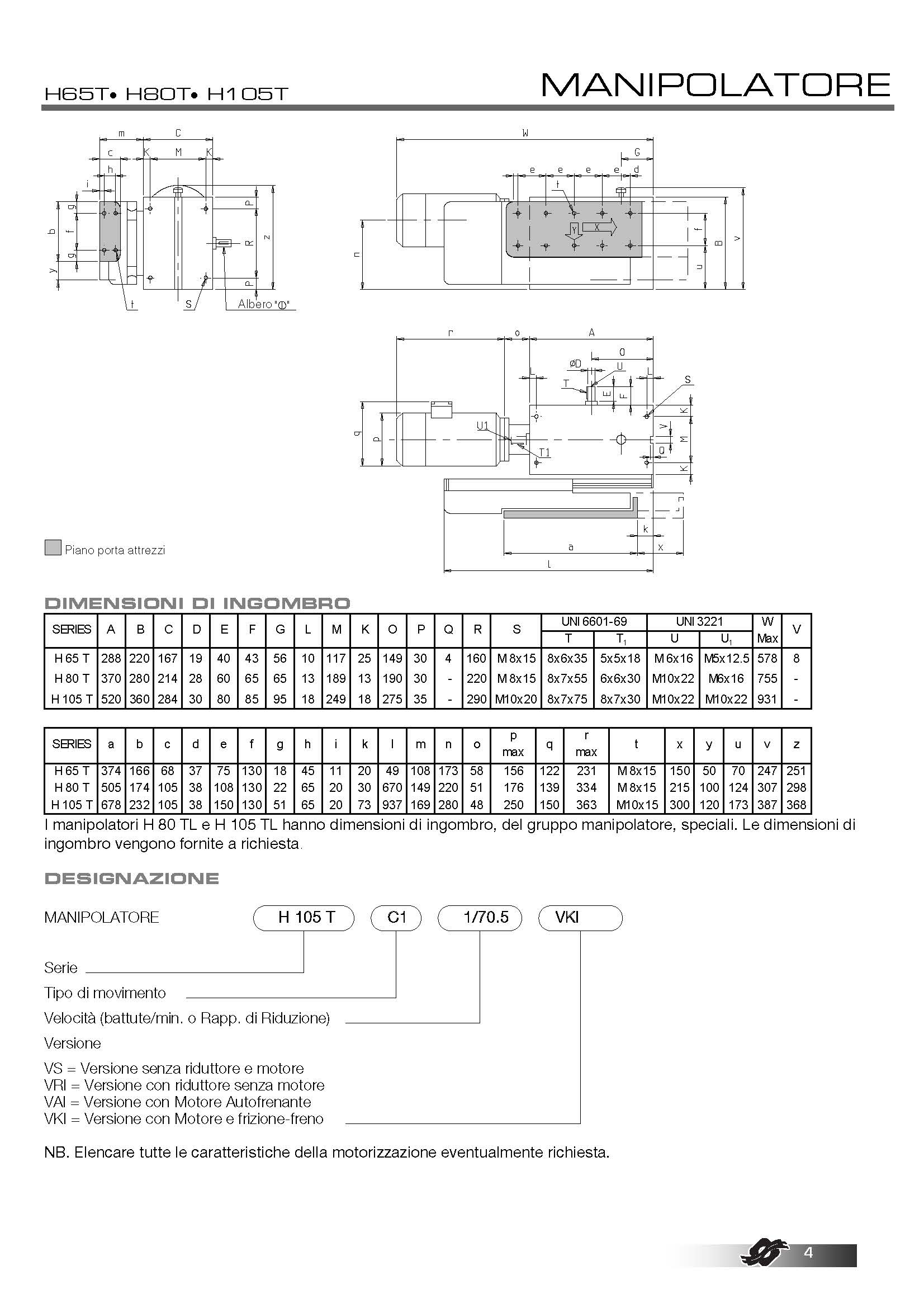 标准尺寸:H65T - H80T - H105T